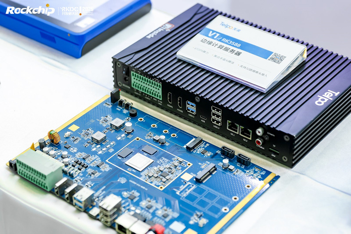 这次,天波带来多款AI产品,包括AI边缘计算服务器、AI菜品识别终端、智能收银机、鸿蒙系统智能访客机等,这些产品依托瑞芯微芯片的高性能算力支持,在智能化场景中展现出卓越实力: