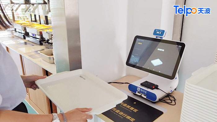 员工只需将带有二维码的餐盘放置在指定位置,再在天波人脸支付团餐消费机TPS650的人脸识别摄像头前刷脸,就能自动绑定餐盘和个人,再将餐盘放在布菲炉前按自己的喜好自助取餐,布菲炉的识别称重装置就能识别你取了多少菜,并自动计算应付金额,并在智慧显示屏上显示价格,消费了多少一目了然。员工无需任何操作,自助取餐后就能走人,减少排队时间,也能通过自助取餐减少食物浪费。