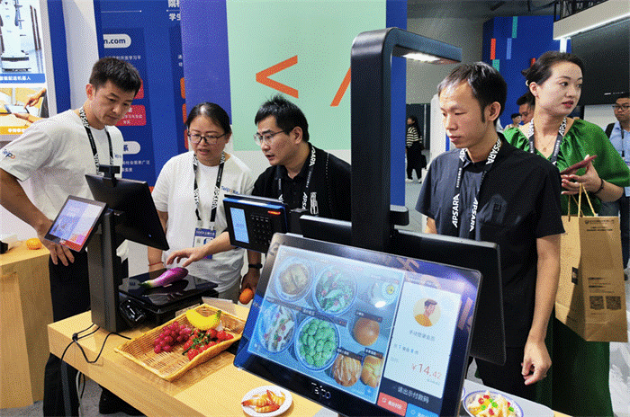 TAG:AI视觉识别生鲜秤,云栖大会,广东天波,天波信息,无影云电脑,边缘计算盒子,移动配送机器人,自助收银机,刷脸消费机
