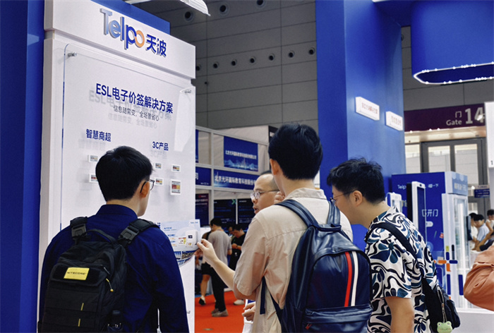应用于自助售货柜的碰一下支付终端和天波最新发布的蓝牙电子价签更吸引众多观众驻足体验,成为观众咨询的产品之一。