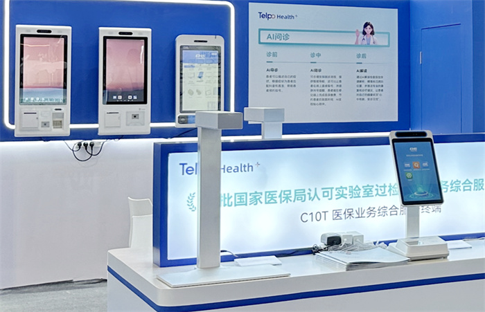 同样支持刷脸医保支付的还有天波医保自助综合服务终端K32,集成首批三类刷脸医保支付设备,同时还能实现签到取号、门诊缴费、报告打印、医保支付等多功能一窗通办,覆盖医院业务全流程,吸引众多参观人士前来体验。壁挂式医疗自助服务一体机K8还能支持接入AI问诊功能,让就医更简单,让患者少排队,让医院更高效。