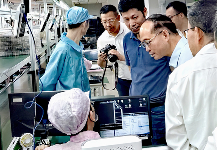参观期间,郑书记对天波技术创新和扎根制造业的稳健发展给予了高度评价。在听取了负责人的详细介绍后,郑书记勉励企业吸收和培养更多人才,助力企业技术更新迭代,做专做精。同时,他提出企业要把握大规模设备更新和消费品以旧换新政策机遇,加快设备更新换代、产品迭代升级,有效激发新需求、拓展新市场。在追求创新时不仅要技术创新,也需要通过技术整合和需求整合去创新场景,满足不同的产品需求,提升企业生产质效和市场竞争力。