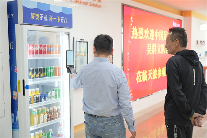 比赛前,吴群立先生来到天波参观体验多款创新产品,感叹于自助点餐机、“碰一下”支付等新技术带来的便捷,并对天波带来的社会价值表示赞赏。
