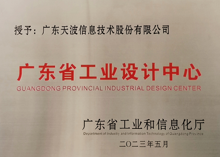 广东天波信息技术股份有限公司荣获由广东省工业和信息化厅授予的“广东省工业设计中心”称号认定。