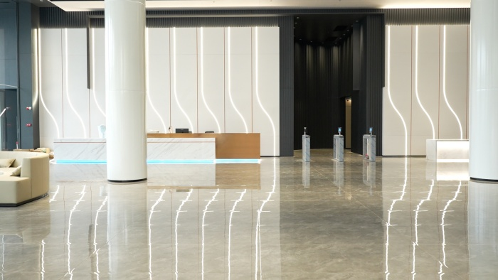 因此,大楼采用环保材料和节能技术,通过环保式幕墙设计,实现了良好的采光与通风效果,巧妙地平衡了美观与舒适度。其中,一楼大堂前台设计融合佛山龙舟文化的船桨元素,以此突显“同舟共济、敢为人先”的企业精神。