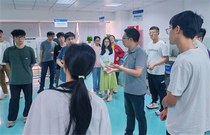 天波信息研发中心总监黄子洲等领导带领同学们参观了企业展厅、研发中心、生产线等部门,介绍天波相关产品的应用领域和产品制造流程,并耐心解答同学们提出的问题,并鼓励同学们通过学科竞赛巩固专业知识、锻炼实践动手能力、提升自己的发展竞争力。